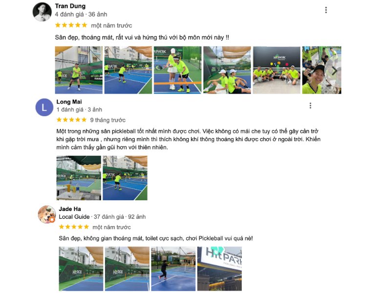 Sân Pickleball Hit Park nhận được nhiều đánh giá tích cực từ cộng đồng người chơi. Họ đánh giá cao chất lượng mặt sân, sự thân thiện của nhân viên và không gian thoáng mát.